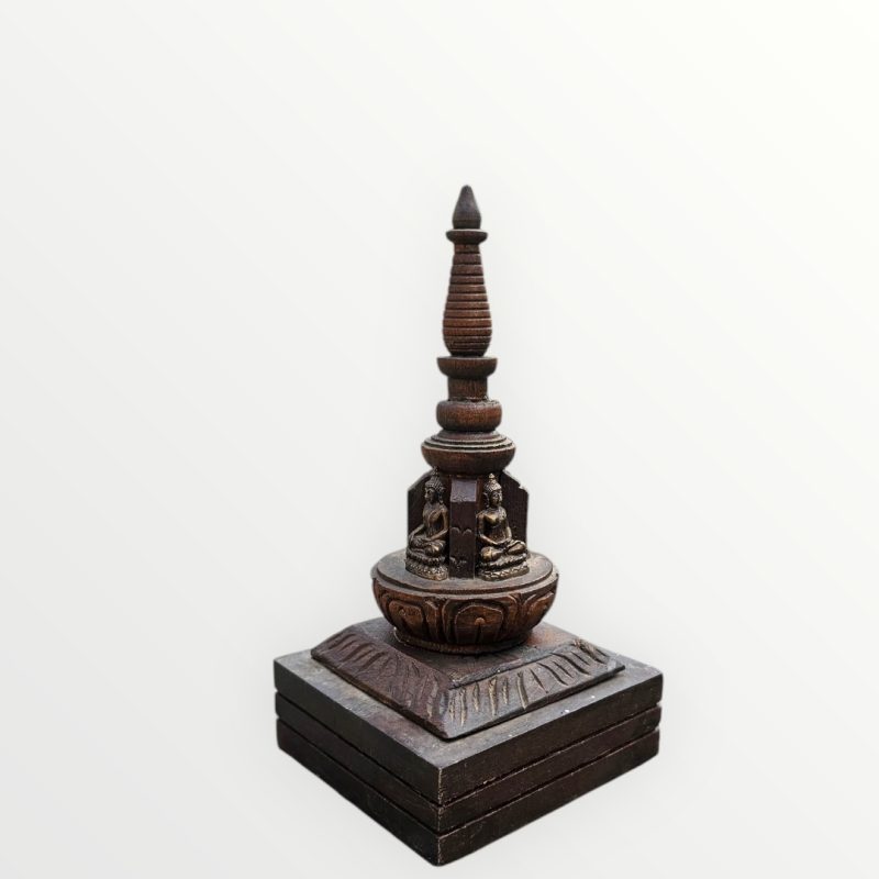 Chaitya w/metal Buddha & wooden base S- 7″